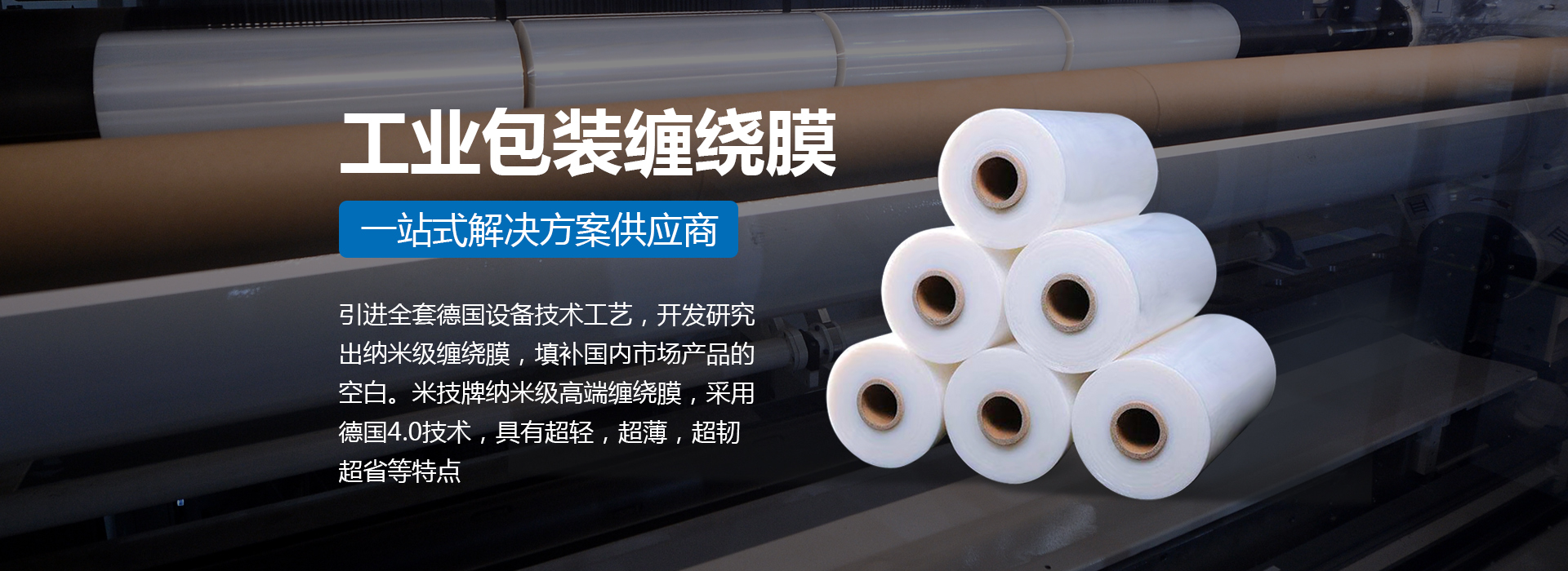 引進全套德國設備技術工藝,開發(fā)研究出納米級纏繞膜,填補國內市場產品的空白。米技牌納米級高端纏繞膜,采用德國4.0技術,具有超輕,超薄,超韌,超省等特點。